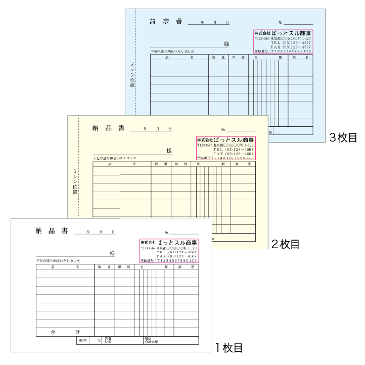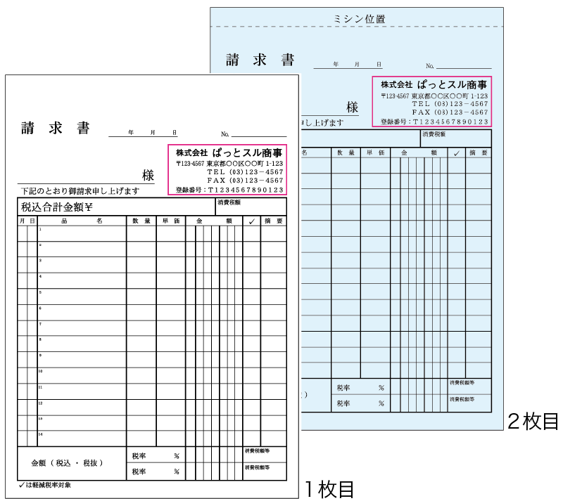 請求書タイプの伝票です。3冊から注文OK!・軽減税率対応も含め全3種をラインナップいたしました。